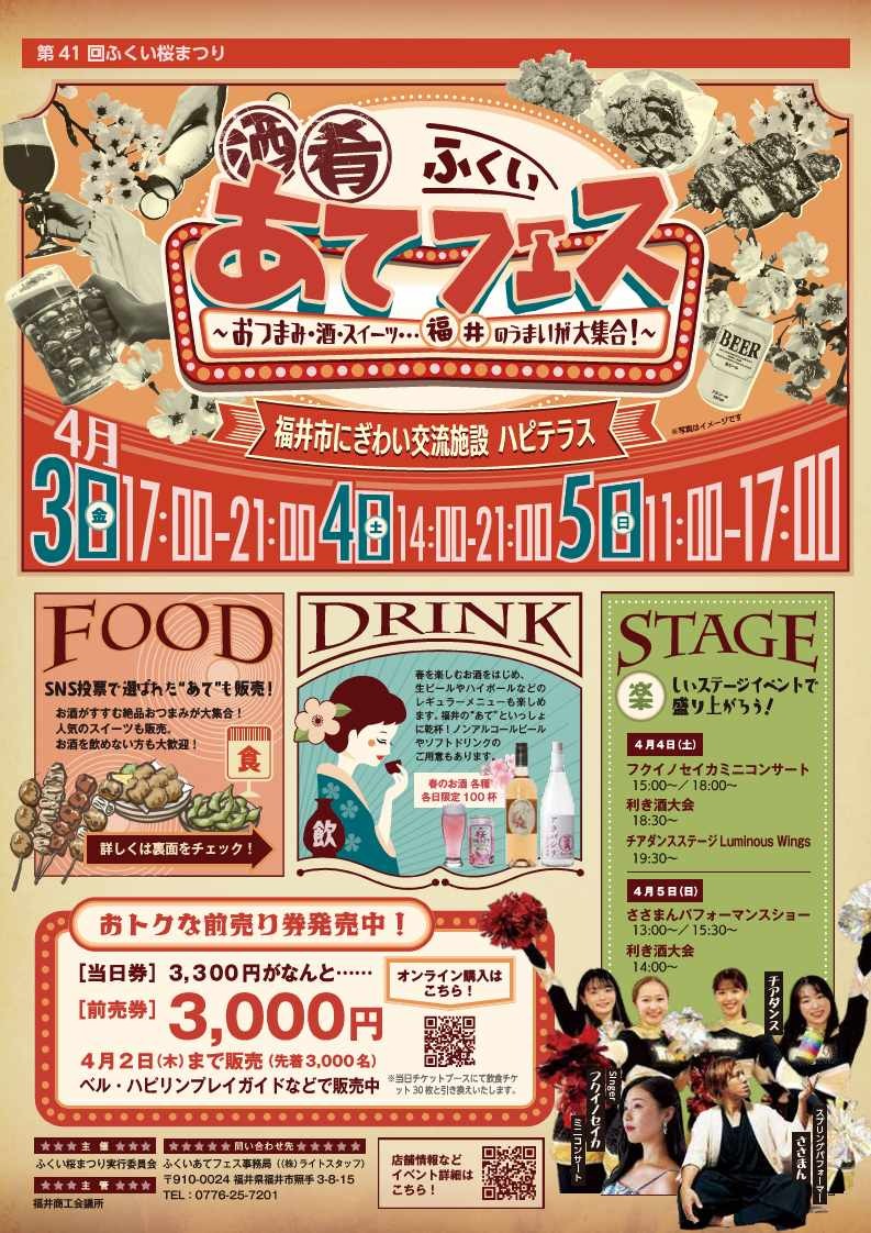 桜が咲き乱れるふくいのまちなかで、おいしい酒と酒にピッタリの「あて」が大集合。