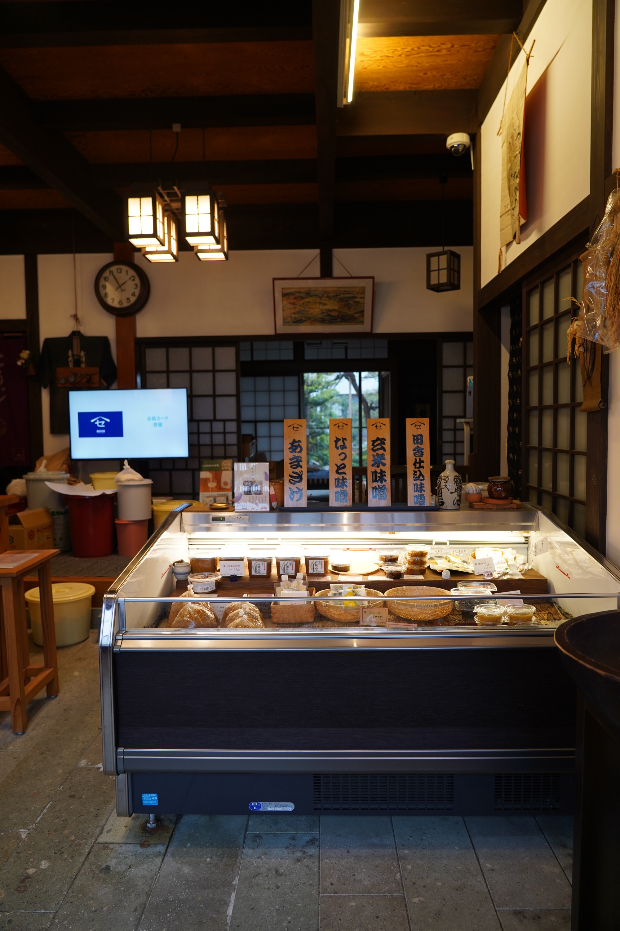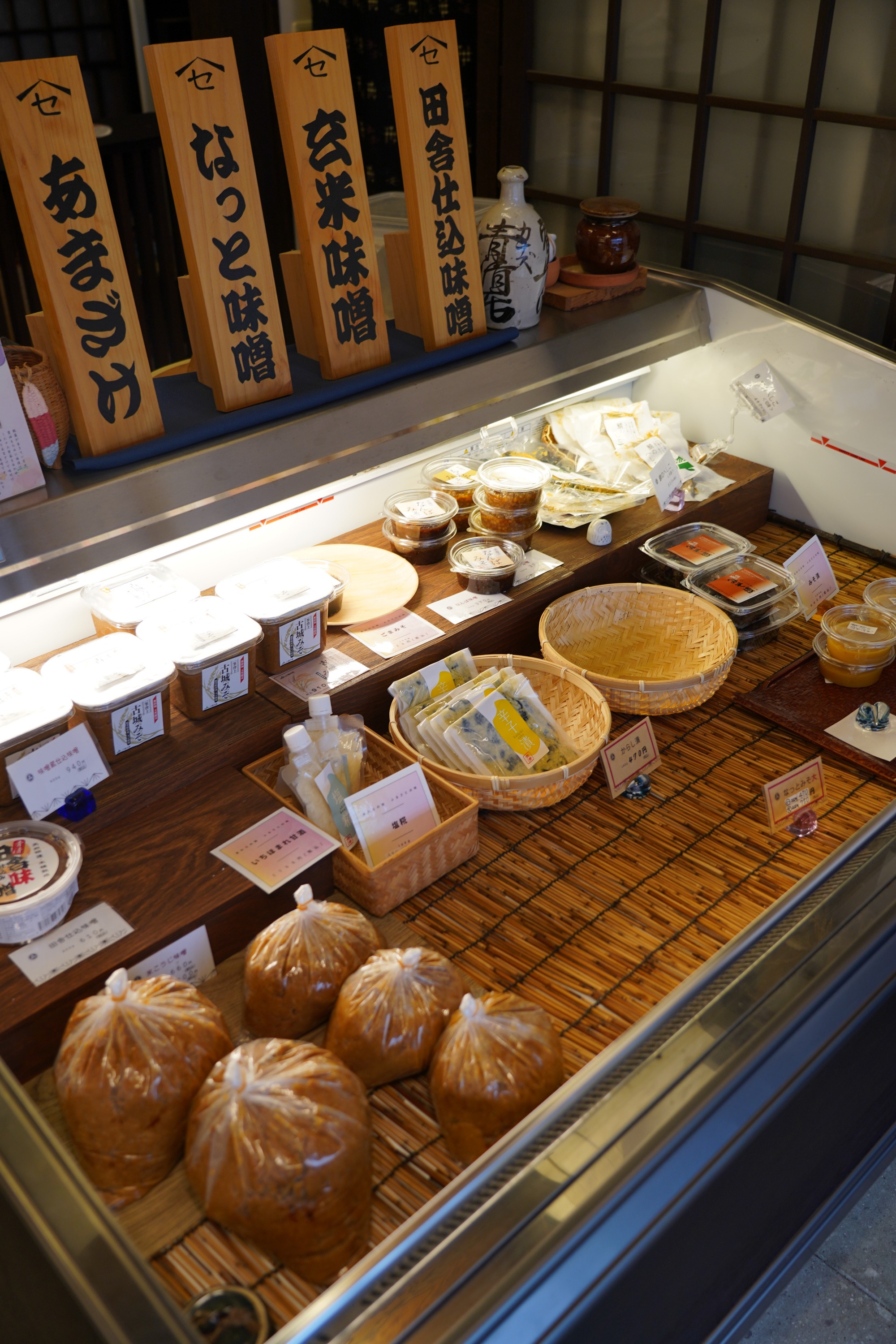 看板商品の「はまなみそ」をはじめとし、糀、味噌、醤油、漬物など様々な商品を販売。
