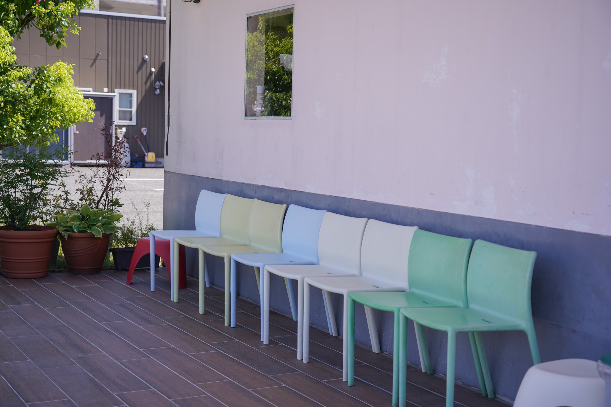 テイクアウトのお店ですが、店頭に椅子やベンチが置いてあるので買ってすぐに楽しむことができます。