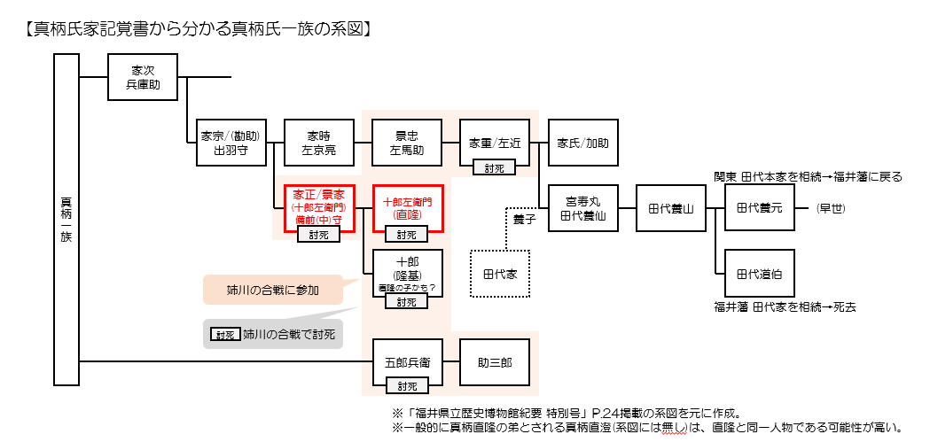 「真柄氏家記覚書」にて判明した系図を示します。