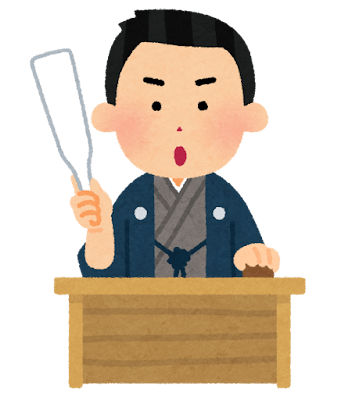「講談」とは、張り扇(はりおうぎ)で釈台(小さな講話台)を叩きながら、歴史的な物語を読み上げる日本の伝統芸能です。見た目は落語に似ていますが、非常に歴史が古く、またその始まりは「太平記読み」と言われています。