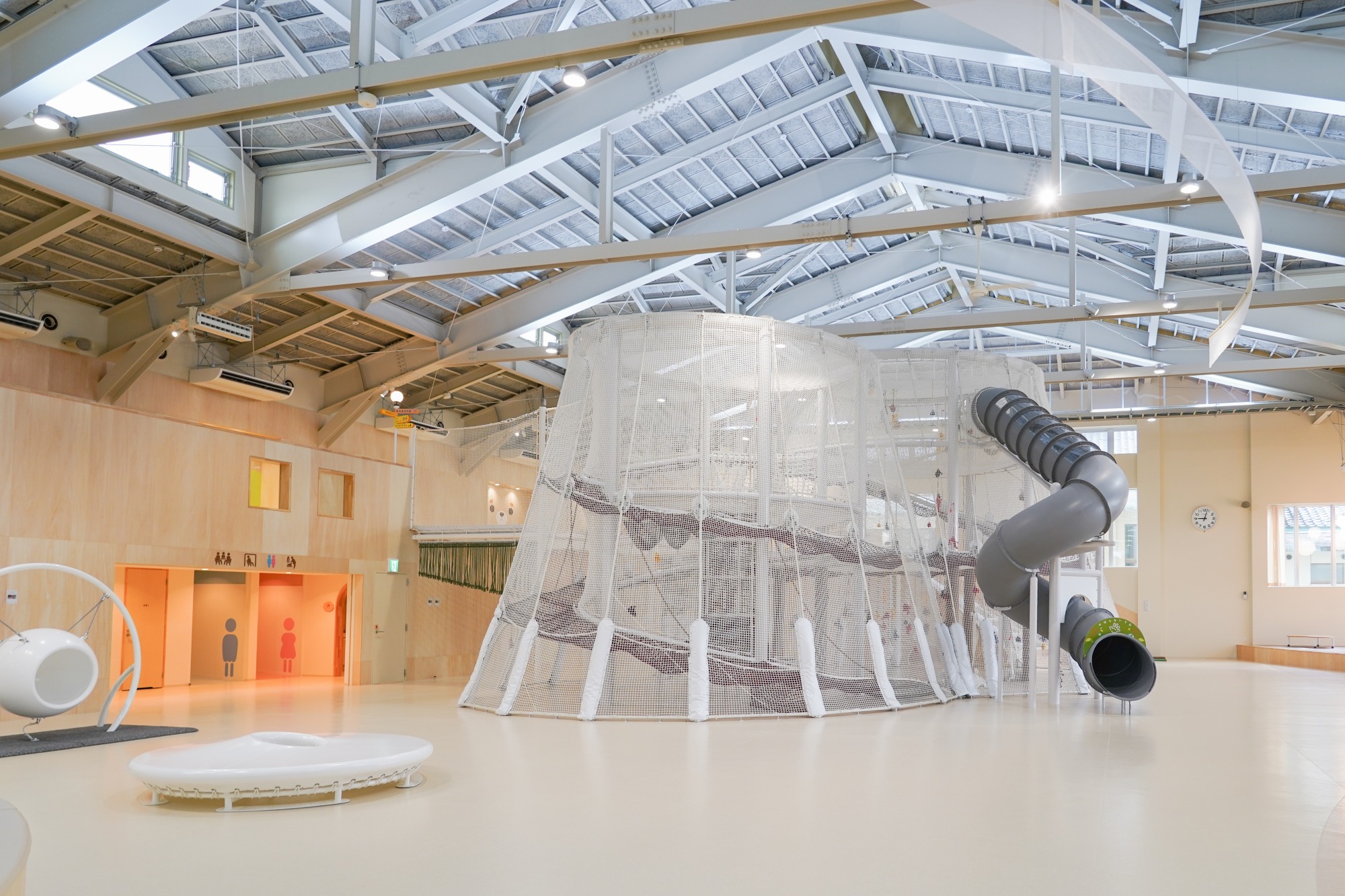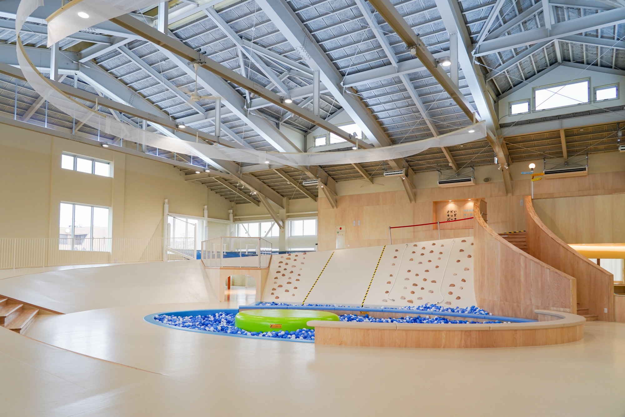 広々とした施設内には、坂井市の特徴を活かした遊具や、子どもたちが思いきり体を動かして遊べる仕掛けがいっぱい!