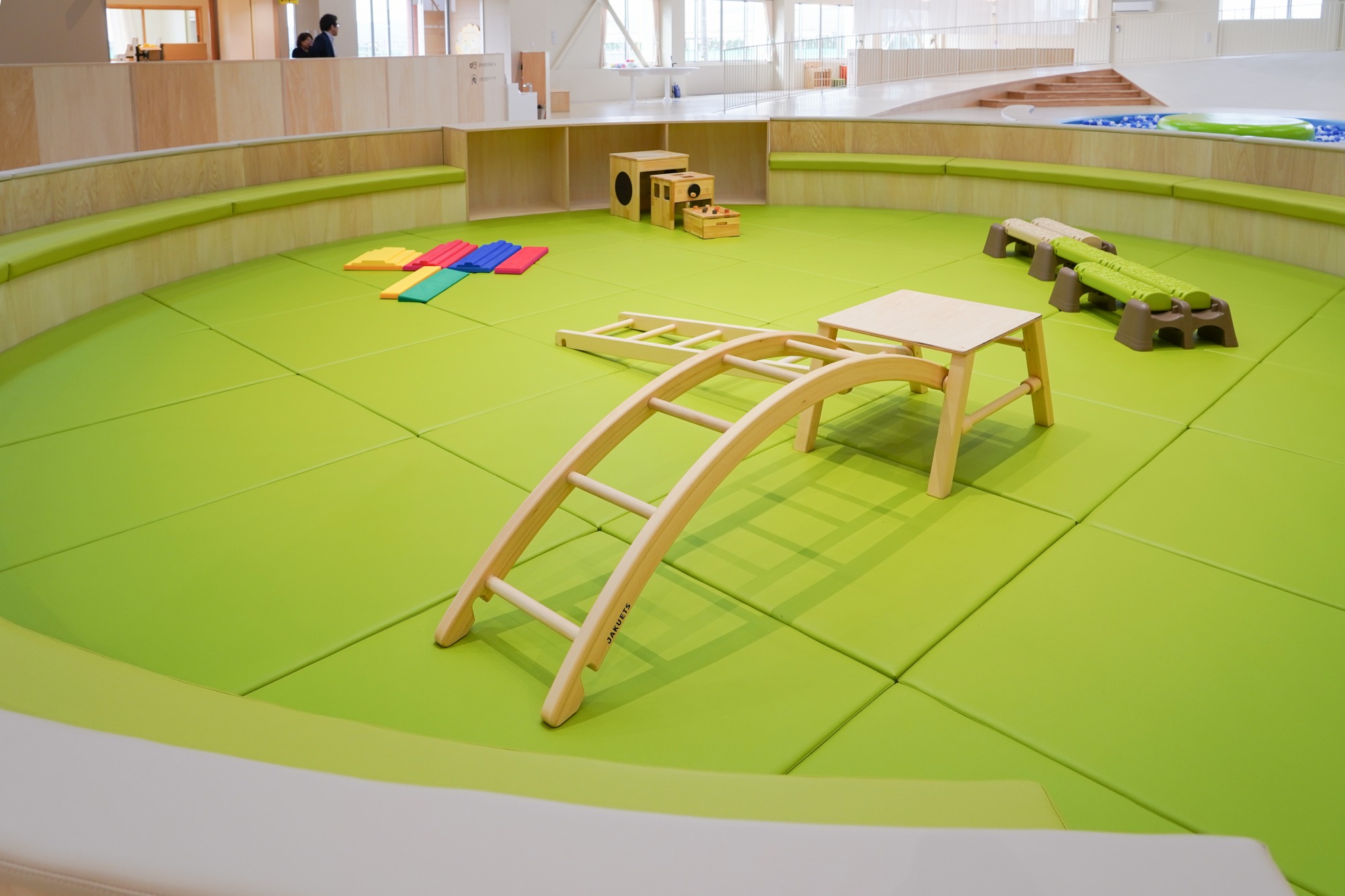 こちらは、広大な坂井平野をイメージしたスペースで、まだ歩けない小さなお子さんや赤ちゃんがゆったりと過ごせる場所です。