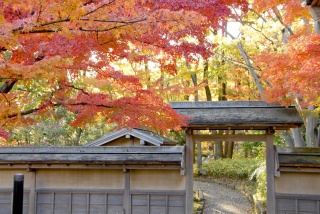 名勝養浩館庭園の秋の風情を楽しみながら、お茶と季節の主菓子(練り切りなどの生菓子)をお楽しみいただけます。