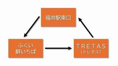 「福井駅東口」「ふくい鮮いちば(福井市中央卸売市場内)」「トレタス」を結ぶシャトルバス!