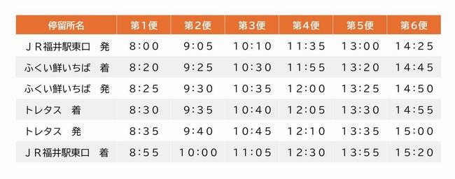 福井駅東口発 8時00分から14時25分(1日計6本)