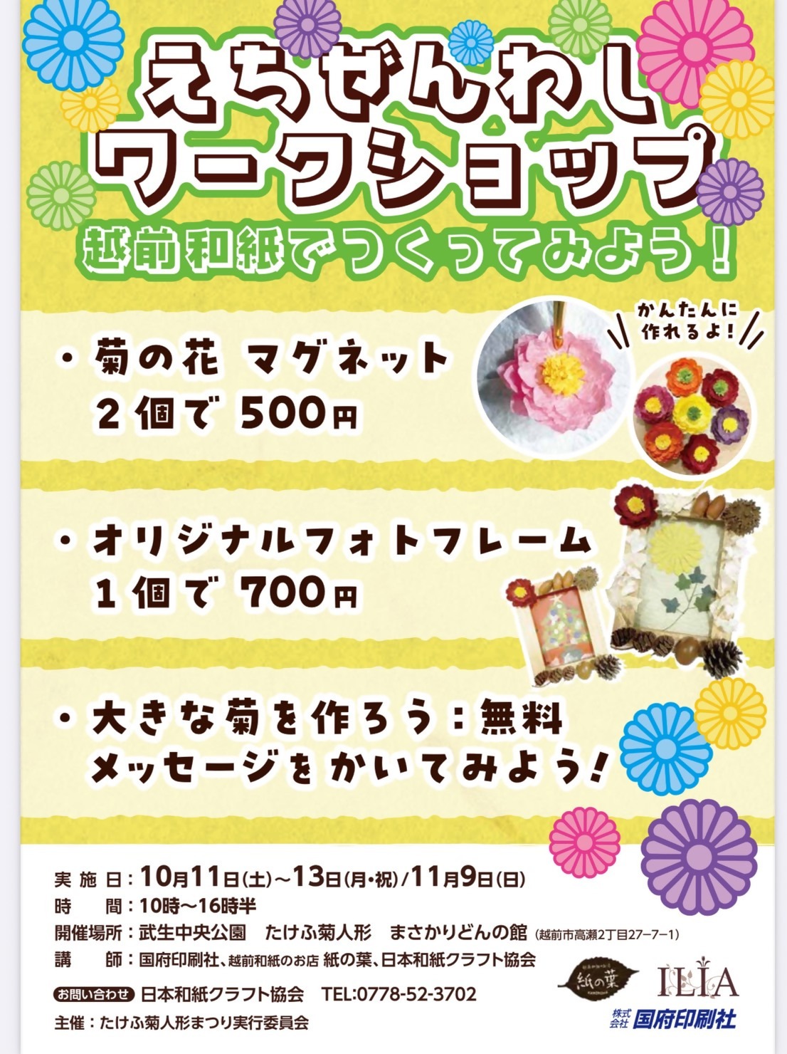 今年も開催されるたけふ菊人形でワークショップを行います。
