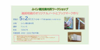 5/2(土)は越前和紙のオリジナルノートとブックマーク作りを行います。