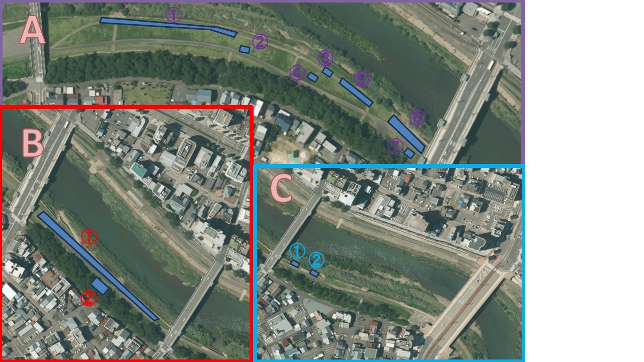 | エリア | A(花月橋~九十九橋) | B(九十九橋~桜橋) | C(桜橋~幸橋) |