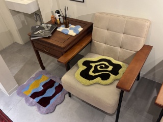 タフティングという手法を用いて、オリジナルのラグを製作しています。タフティングガンという専用の機械を使い、自分だけのオリジナルラグが作れます。糸で絵を描いていくような、新感覚のものづくりを体験してみてください。