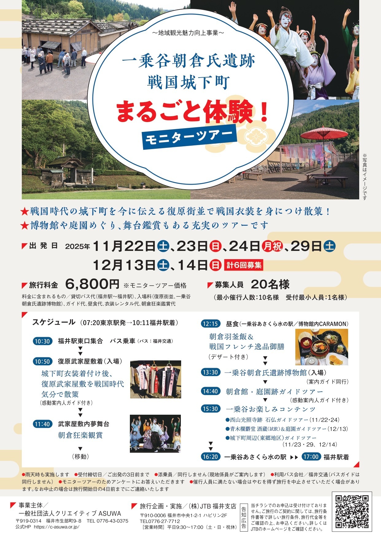福井駅発着で、一乗谷朝倉氏遺跡をまる一日満喫するモニターツアーです。
